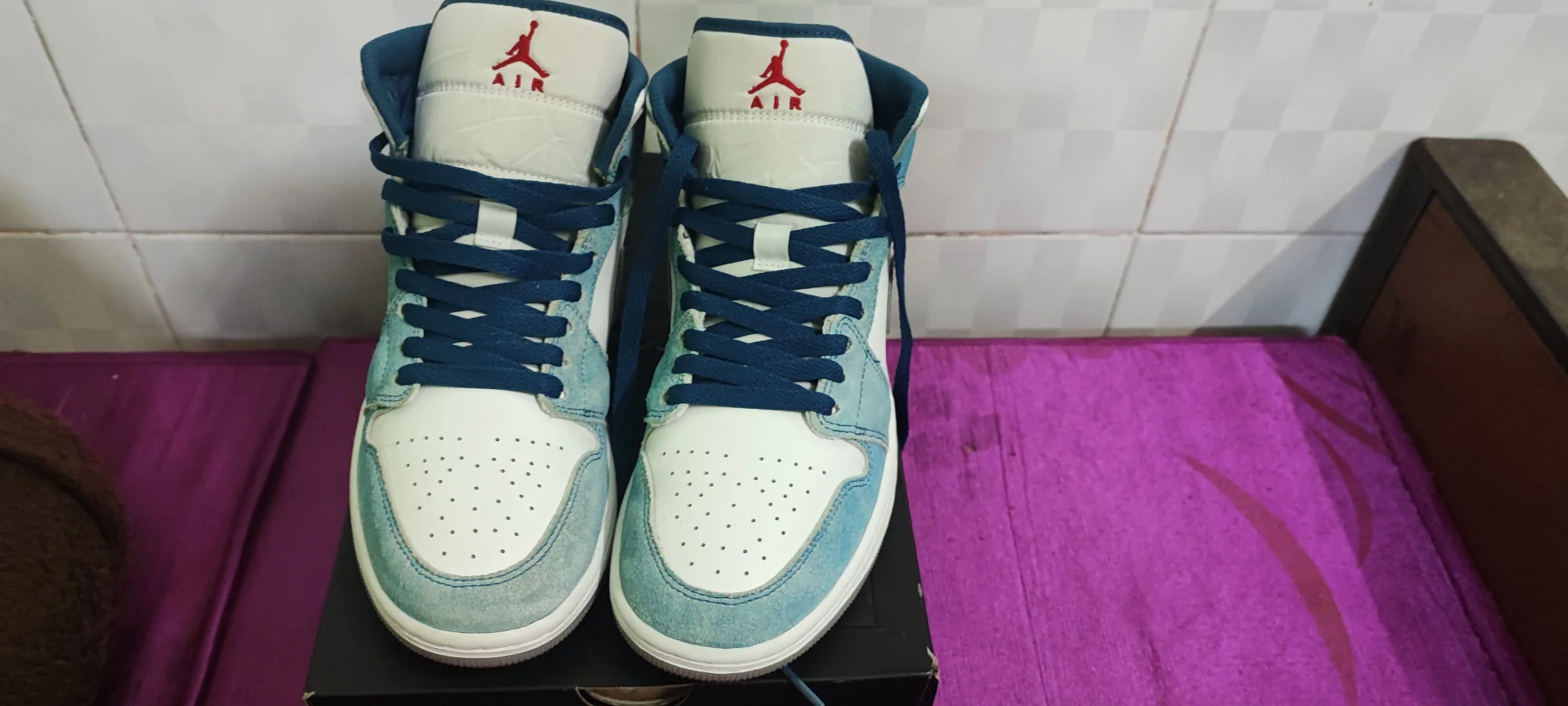 Jordan 1 Mid French Blue Fire Red