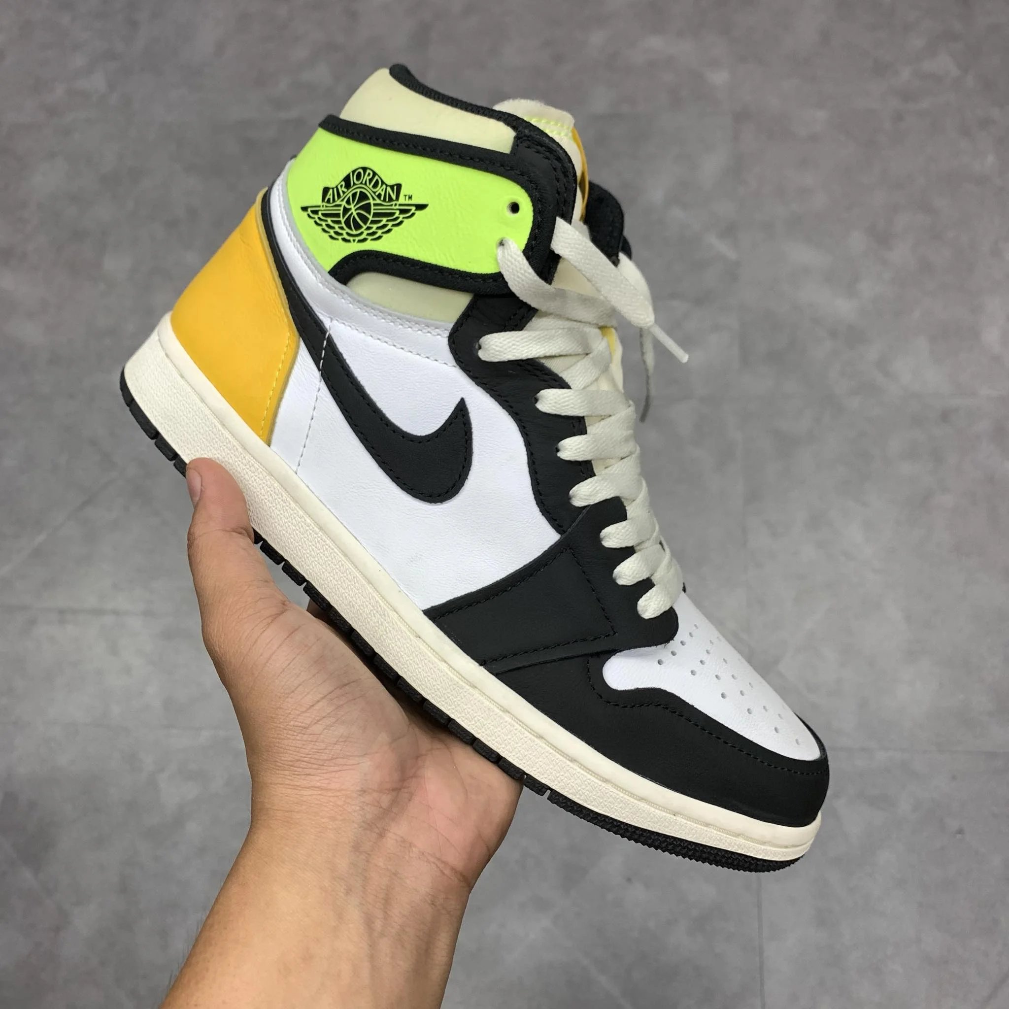 Jordan 1 Retro High White Black Volt University Gold