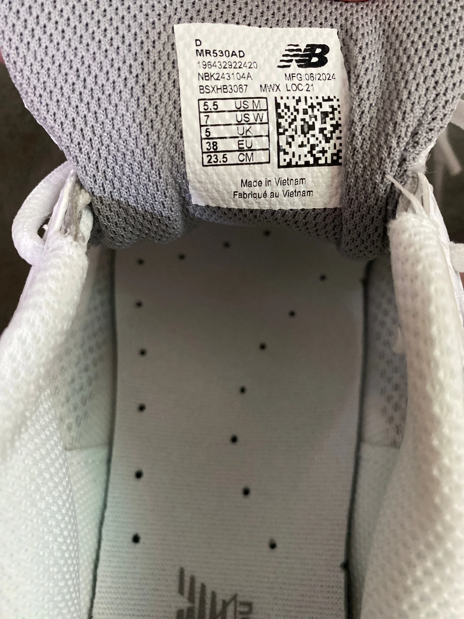 New Balance 530 White Light Gray